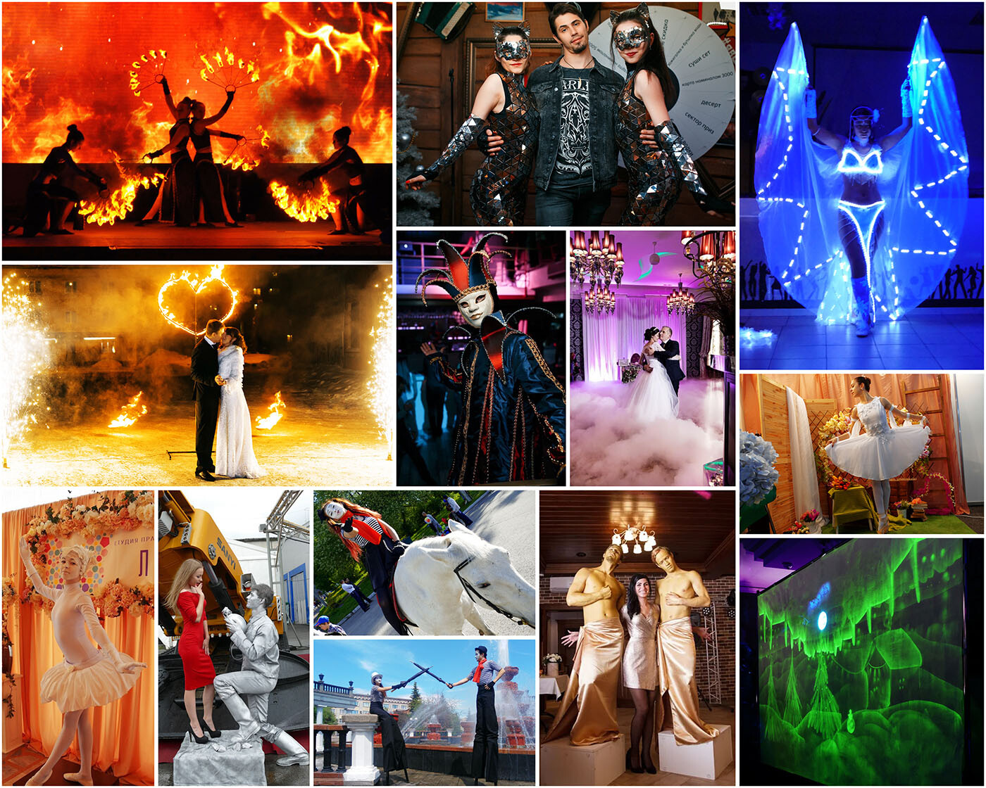 Живые статуи, фейерверки, пиротехническая дорожка, конфетти-пушка, тяжелый дым и многое другое от надежной компании. Большое вам спасибо за четкую и слаженную работу.
