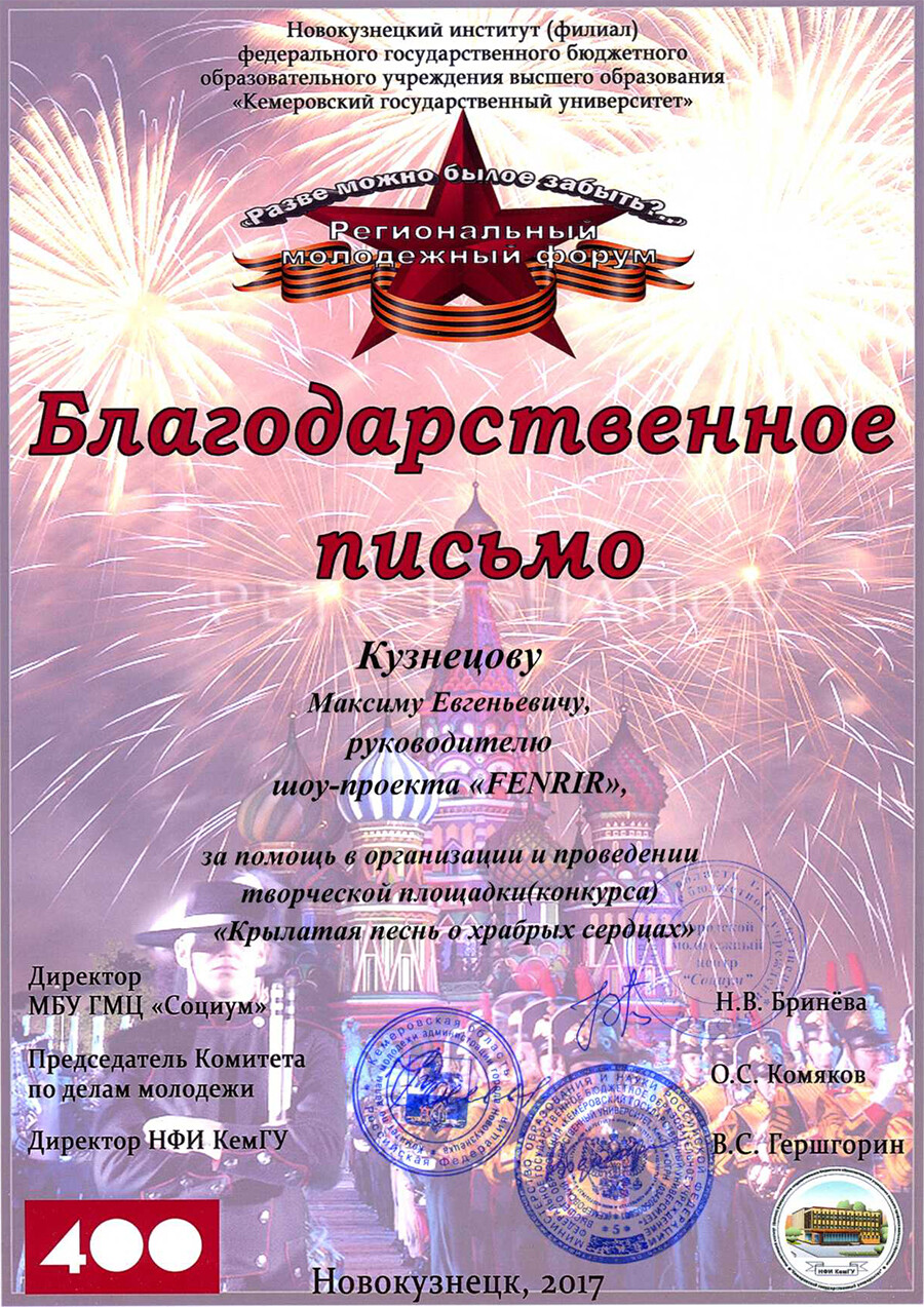 ВЫРАЖАЕМ ОГРОМНУЮ БЛАГОДАРНОСТЬ ОТ #КузбасскоетворческоеобъединениеАБЛАДА ШОУ ПРОЕКТУ FENRIR